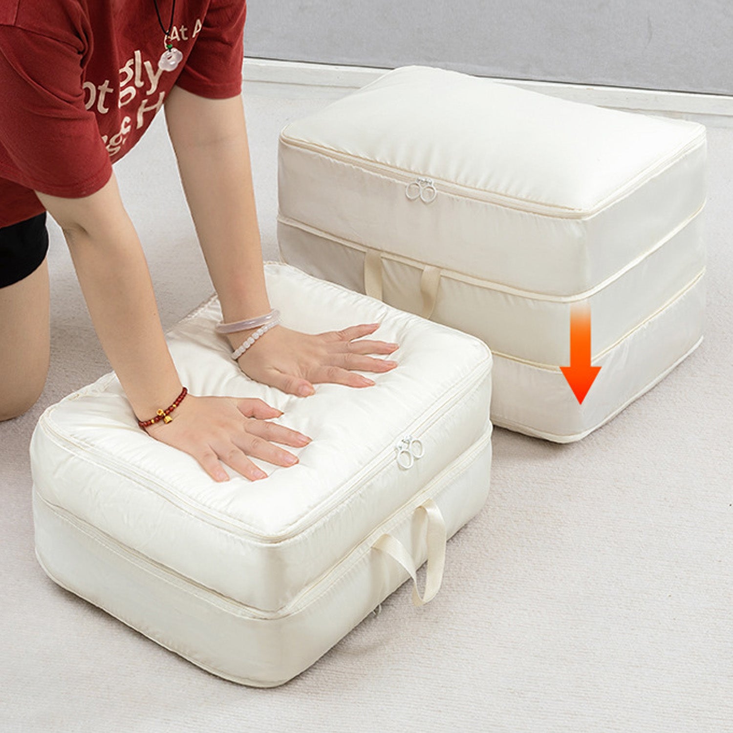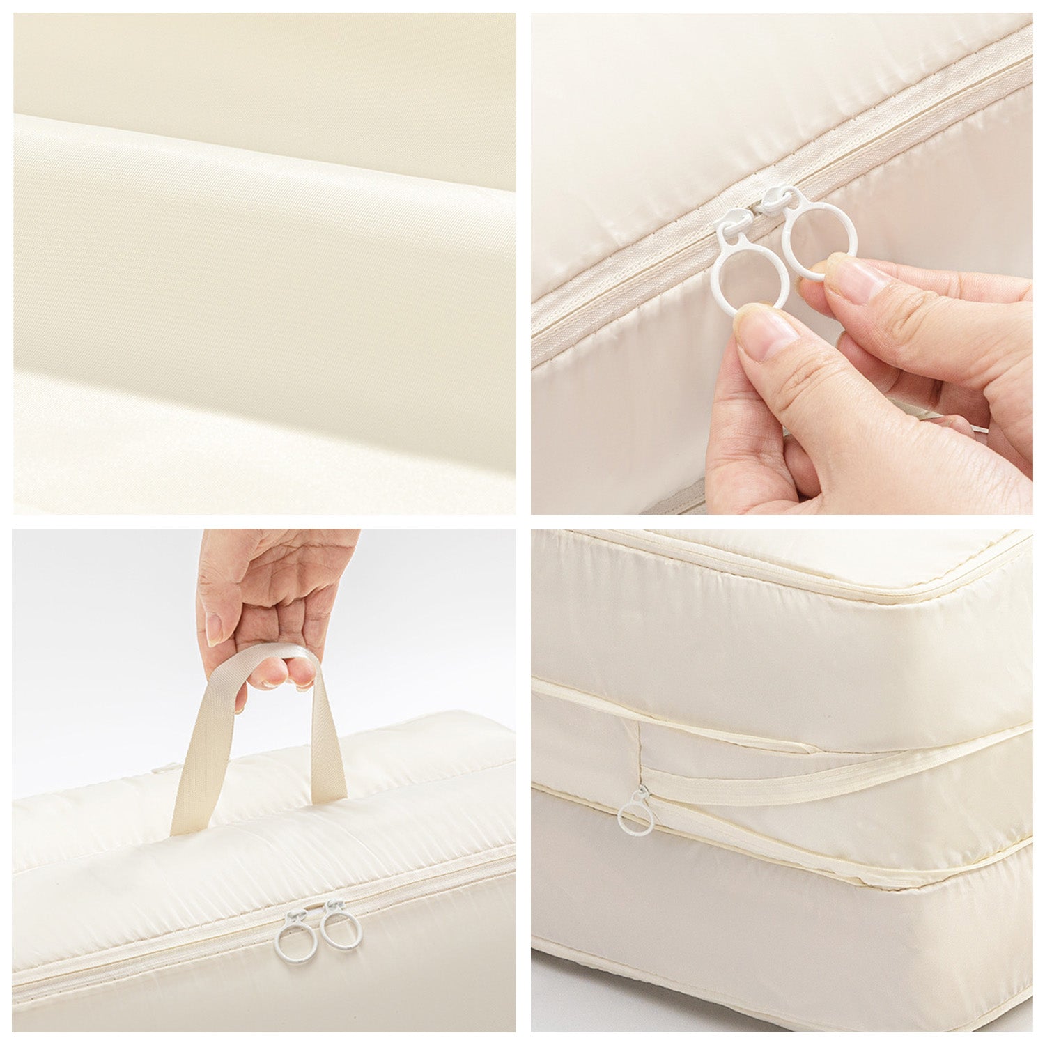 Su diseño portátil y funcional 🌿 permite guardar desde chaquetas de plumón, abrigos, cobijas y ropa voluminosa, hasta prendas más ligeras 👚👕, manteniéndolas siempre protegidas y organizadas. Gracias a su sistema de compresión, podrás reducir notablemente el espacio ocupado 📏, ideal para optimizar maletas en tus viajes ✈️ o aprovechar mejor los armarios en casa 🏡.