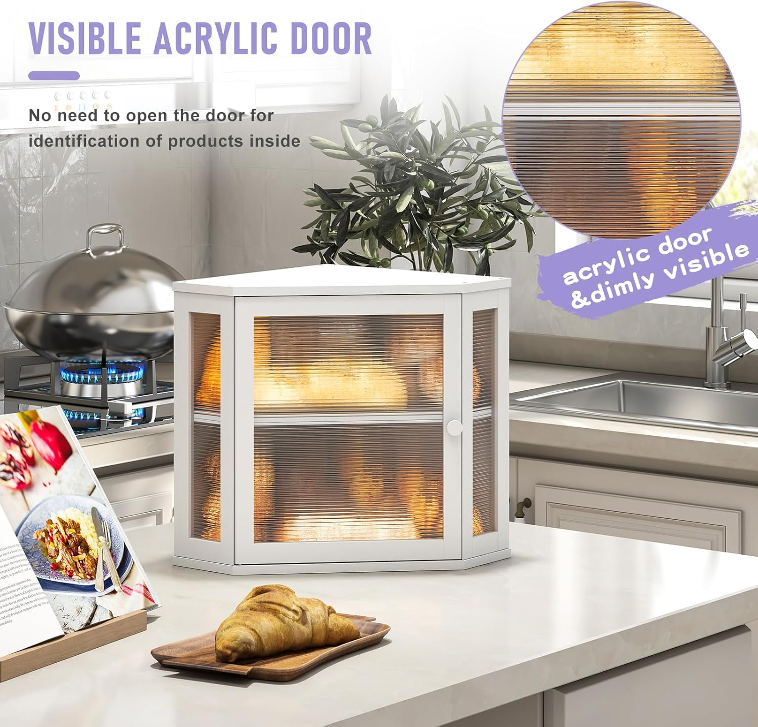 📌 Nombre del producto: Caja de pan de bambú blanco de doble capa con ventana transparente – Contenedor de almacenamiento de encimera