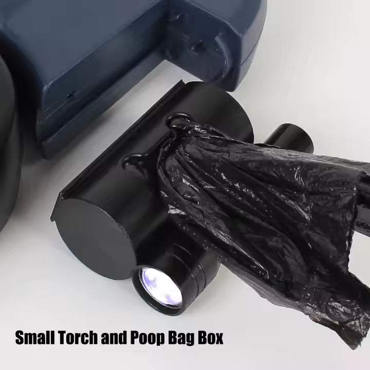 Incluye una linterna LED con 3 modos de iluminación 💡 (alta, baja e intermitente) que garantiza paseos seguros en la noche o en zonas de poca luz, además de un práctico dispensador de bolsas para excrementos 🛍️ que hace más higiénico cada paseo.