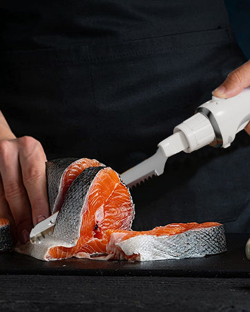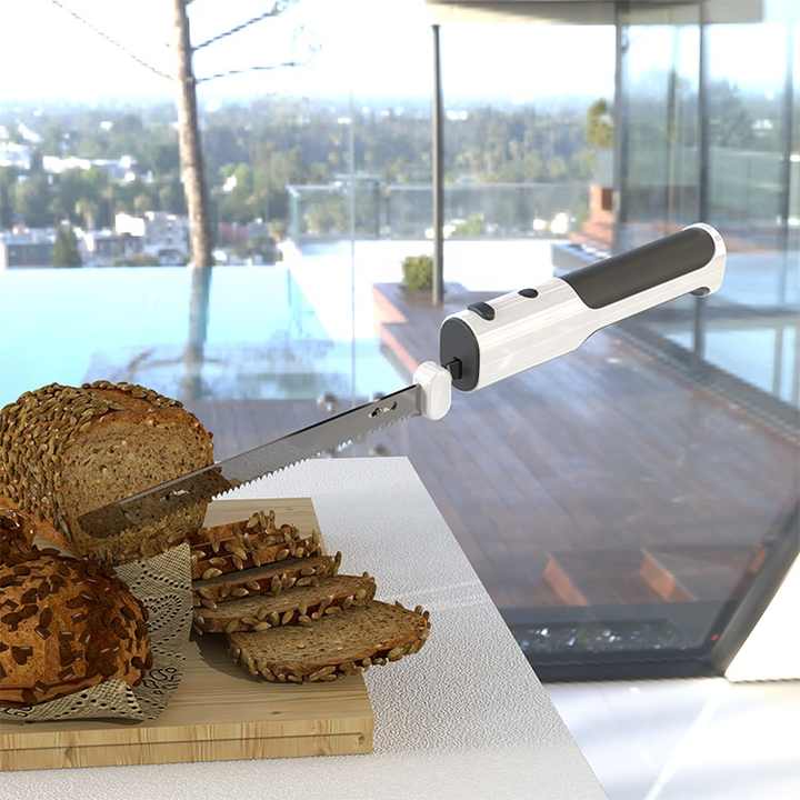 El cuchillo eléctrico inalámbrico es la herramienta 🛠️ ideal para cortar carne 🥩, pan 🍞, filete 🍖 y pavo 🦃 con precisión y sin esfuerzo. Su diseño ergonómico 🖐️ con un cómodo agarre contorneado te permite disfrutar de cortes suaves y uniformes en cada rebanada.
