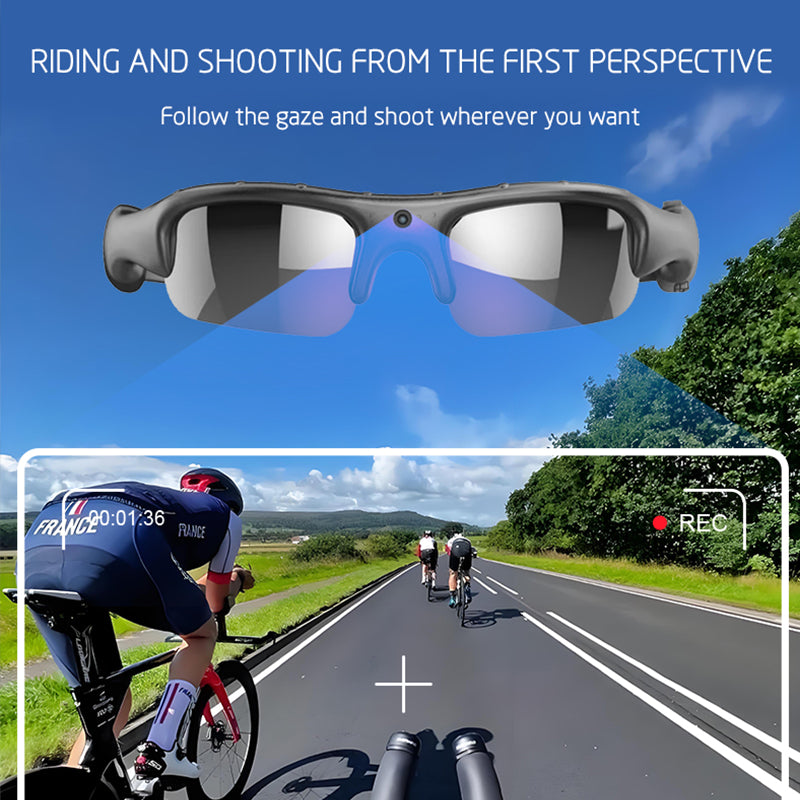 Gracias a su cámara frontal discreta 📸, estas gafas te permiten grabar sin distracciones, manteniendo una vista natural y sin necesidad de sujetar una cámara o celular. Su ángulo amplio de 120° 🌍 capta cada detalle de tu entorno, ideal para grabar rutas, paisajes, competiciones o momentos únicos mientras te desplazas.