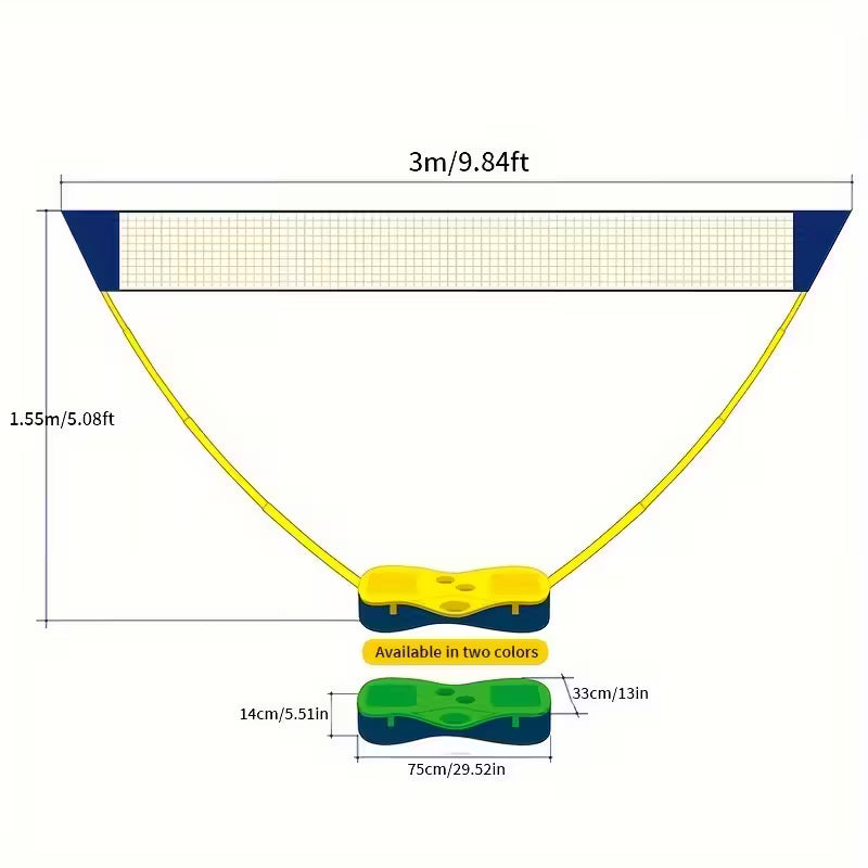 La red de 3 metros ofrece el tamaño ideal para partidas recreativas: lo suficientemente amplia para divertir a niños y adultos, pero compacta para adaptarse a patios pequeños, terrazas, zonas comunes y salones múltiples. Su marco de PVC mantiene la tensión adecuada para un juego fluido y estable, evitando que la red se hunda o se desplace durante los partidos 🏸💪.