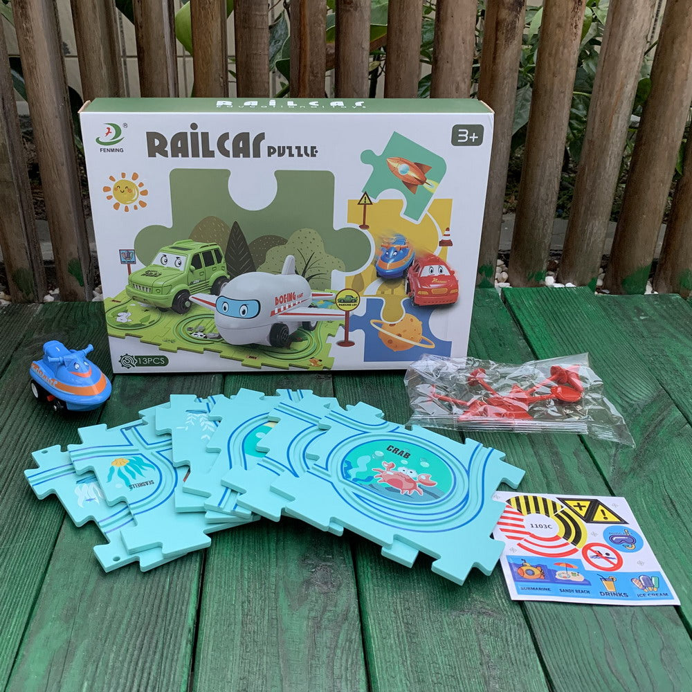 🧩 Rompecabezas DIY con Pista de Coche y Tren Deslizante Eléctrico