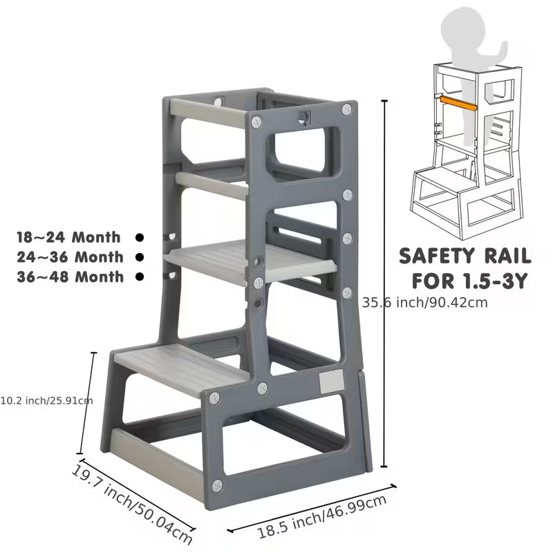 Su altura y estabilidad permiten que el niño participe en actividades como lavar frutas, mezclar ingredientes o alcanzar la mesa. Promueve autonomía y refuerza el aprendizaje Montessori en el hogar.