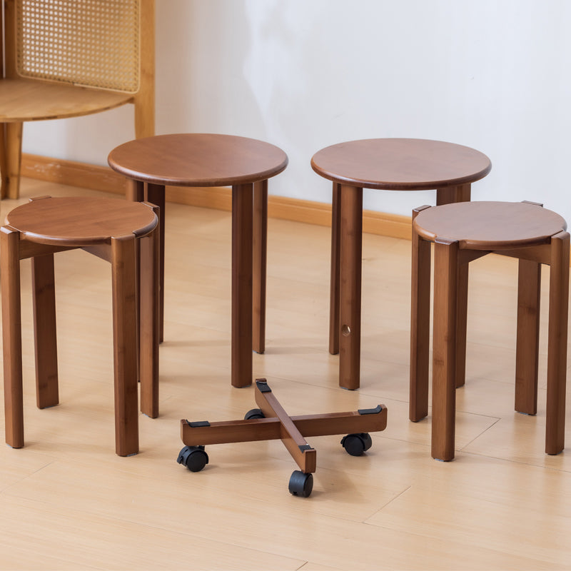 Taburete redondo giratorio de bambú – Mesa de té / Taburete de bar / Apilable – Juego de 4 piezas