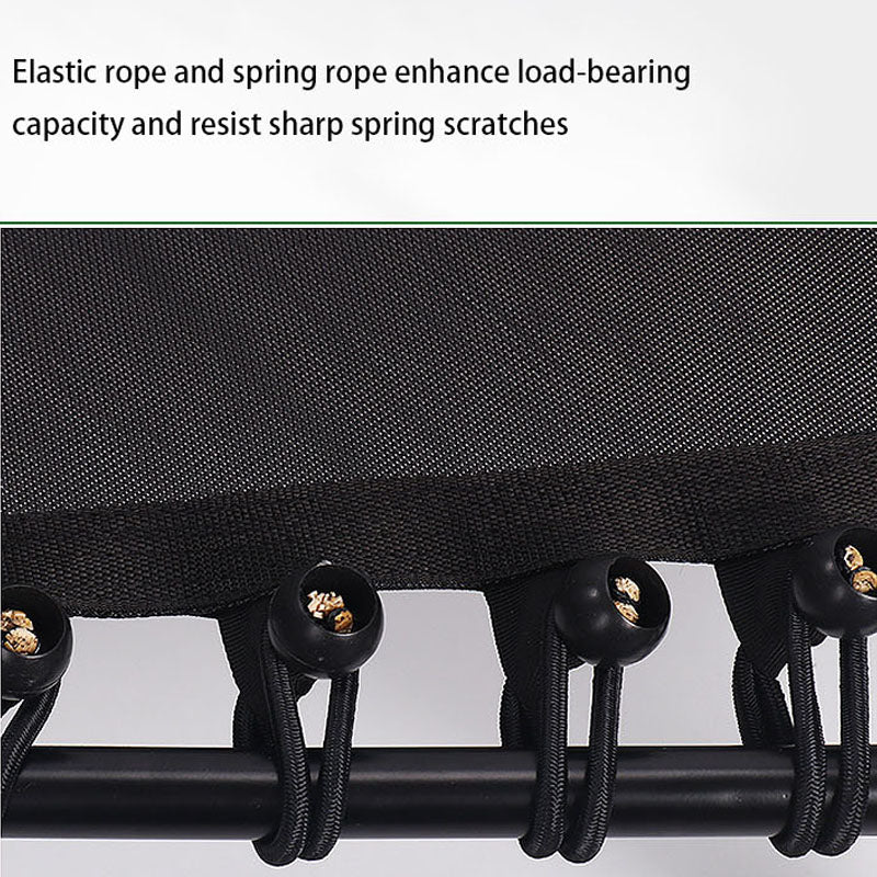 Lo mejor de este trampolín es su capacidad para transformar cualquier espacio de tu hogar en un mini gimnasio completo 🏡💪. Gracias a su sistema de cuerdas elásticas gruesas, ofrece un rebote suave, silencioso y súper cómodo, permitiéndote entrenar a cualquier hora sin molestar a vecinos o familiares 🤫✨. A diferencia de los trampolines tradicionales con resortes metálicos, este diseño reduce el impacto y protege tus articulaciones, ideal para entrenamientos intensos o de larga duración 🔥🦵.